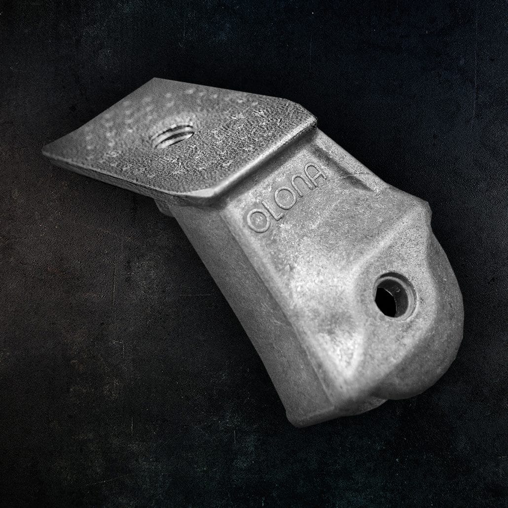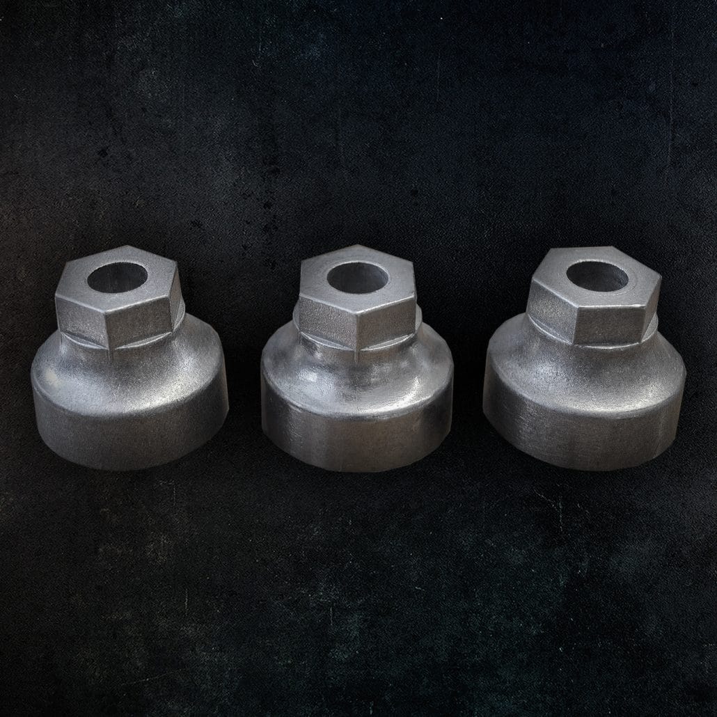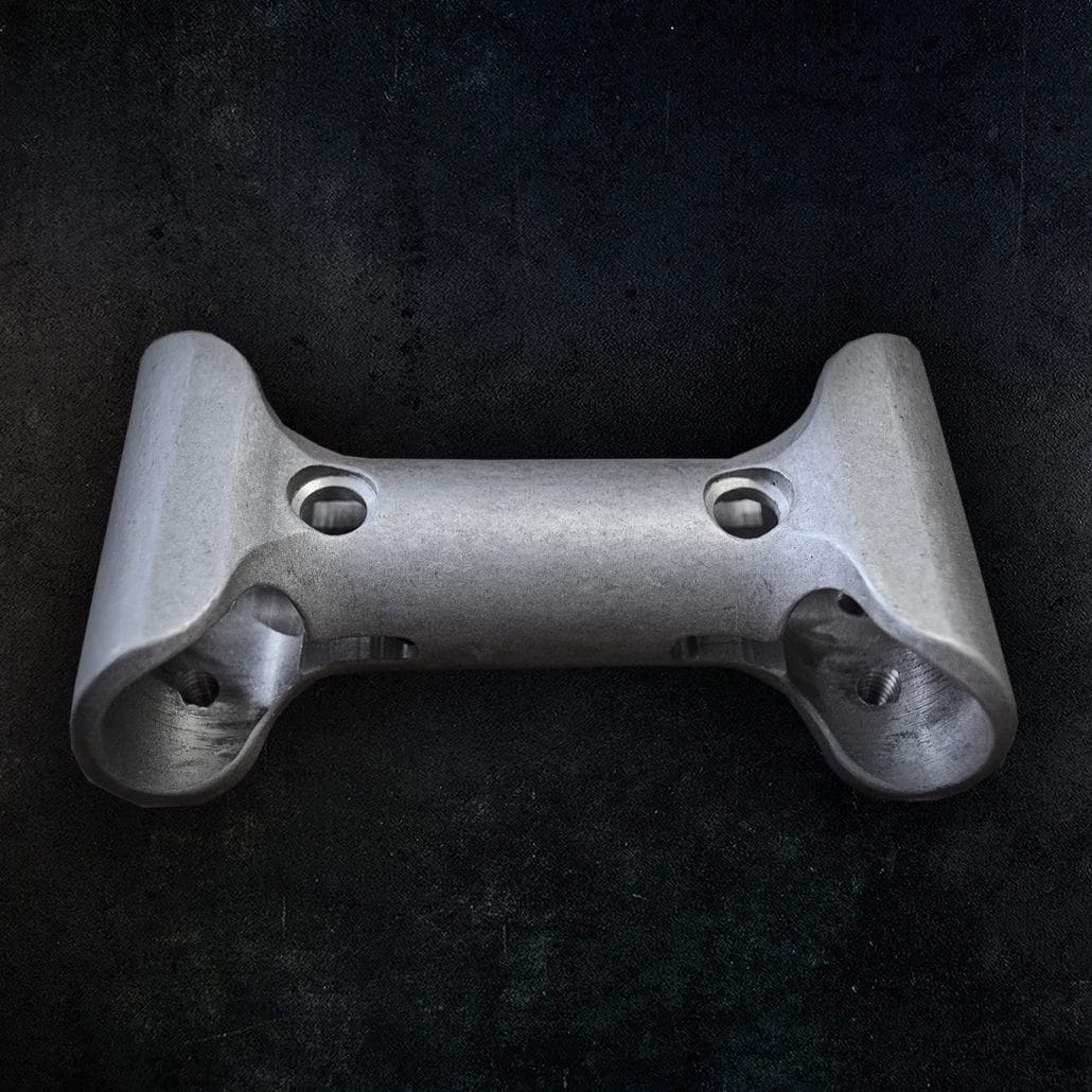 La superficie di alluminio del particolare viene picchiettata dai coni abrasivi che rimuovono bave e imperfezioni da lavorazioni meccaniche o di taglio.