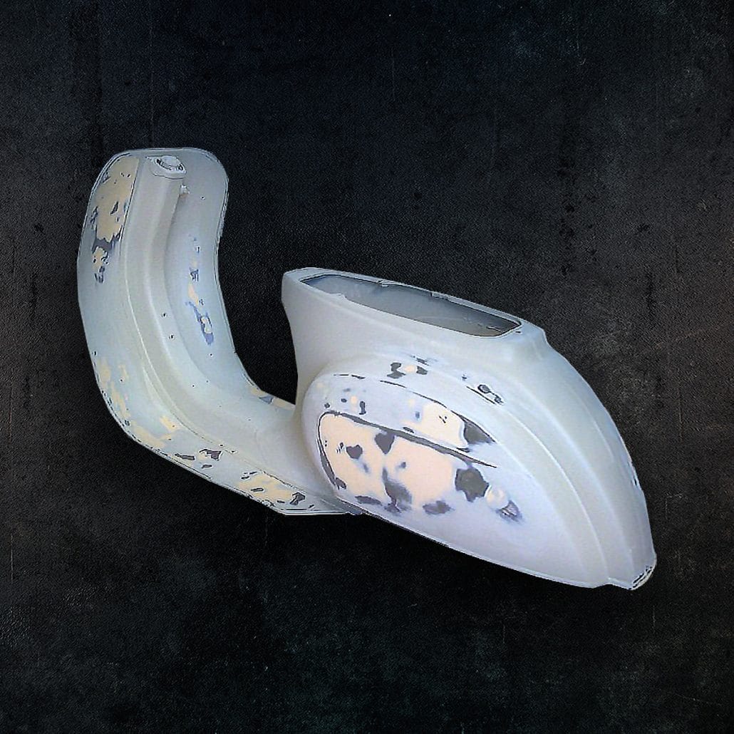 Il telaio della moto dopo la sverniciatura risulta perfettamente ripulito e pronto per essere stuccato e riverniciato.
